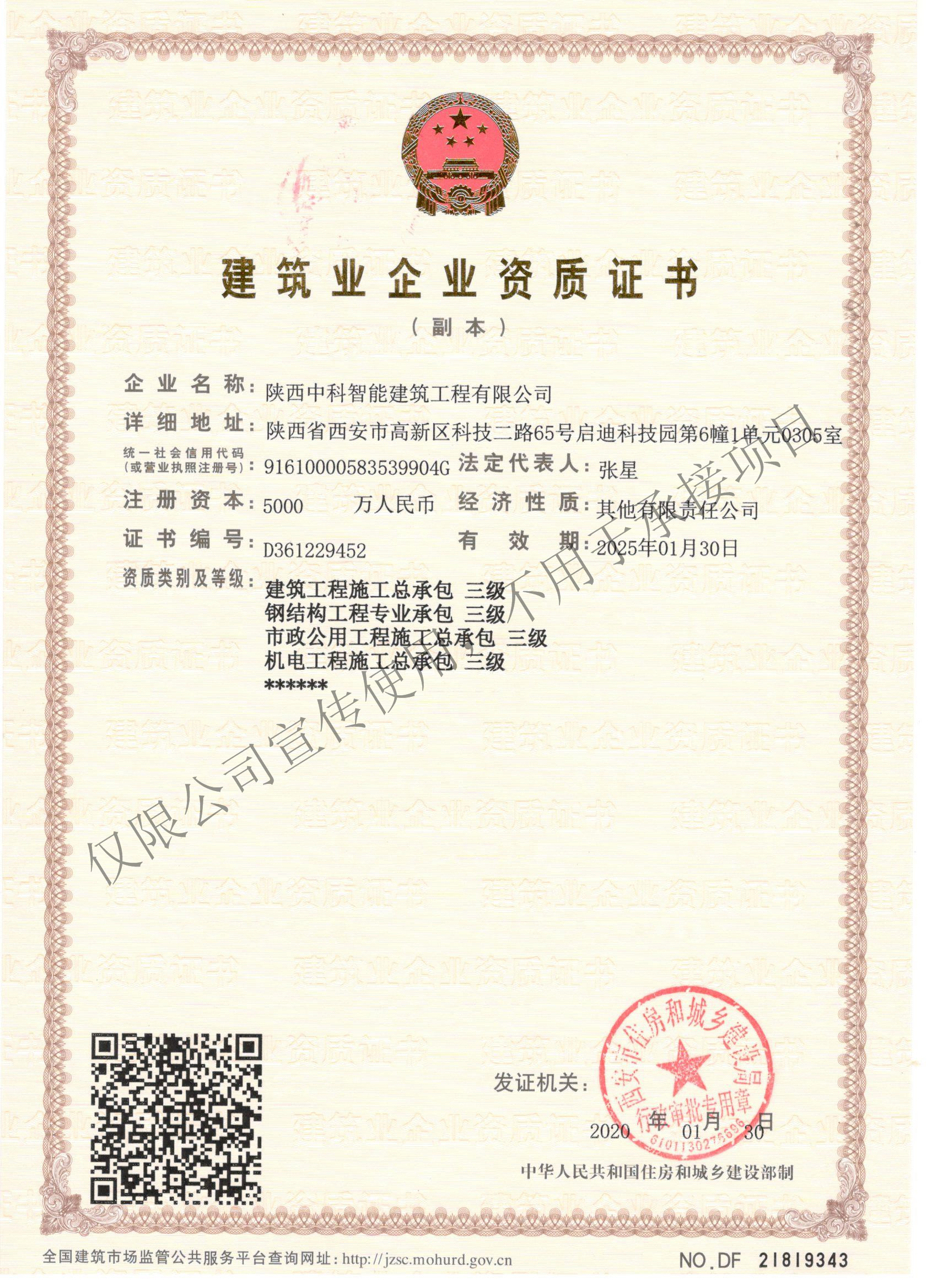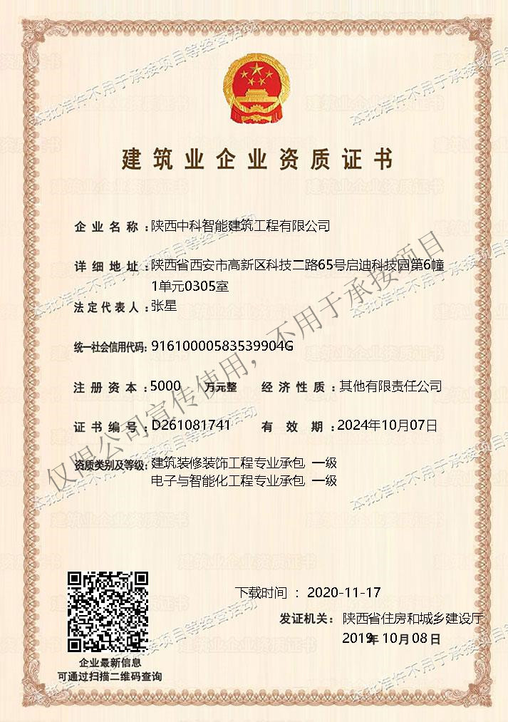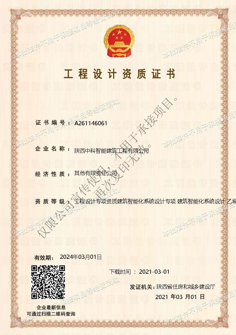 陜西中科智能建筑工程有限公司,注冊成立于古城西安高新區(qū)啟迪科技園,注冊資金1000萬人民幣,公司主要業(yè)務(wù)以智慧建筑,智慧交通,智慧社區(qū),智慧教育,智慧裝飾,智慧林業(yè),智慧照明,智慧醫(yī)療,智慧水利等行業(yè),是一家綜合性科技公司。公司成立以來,先后獲得國家頒發(fā)的工程設(shè)計專項資質(zhì)建筑智能化系統(tǒng)設(shè)計乙級資質(zhì)、電子智能化專業(yè)承包一級,建筑裝修裝飾專業(yè)承包一級,機電工程施工總承包二級,市政公用工程施工總承包二級,鋼結(jié)構(gòu)工程專業(yè)承包二級,建筑工程施工總承包二級,消防設(shè)施工程專業(yè)承包二級,獲得國家相關(guān)質(zhì)量體系認(rèn)證,ISO9001質(zhì)量管理體系認(rèn)證證書,ISO14000環(huán)境管理體系認(rèn)證證書,ISO18000職業(yè)健康安全管理體系認(rèn)證證書,擁有十幾項軟件著作等級證書。公司長期專注于技術(shù)創(chuàng)新,擁有強大的技術(shù)團隊、雄厚的技術(shù)實力、完整的技術(shù)支持和技術(shù)服務(wù)團隊。公司與眾多高等院校建立了校企合作。在合作過程中,公司秉承“誠信進(jìn)取、積極時效、客戶至上”的企業(yè)精神,不斷超越客戶期望,以開放、合作、創(chuàng)新的博大胸襟,推進(jìn)行業(yè)合作共贏,力爭成為行業(yè)領(lǐng)先高科技企業(yè)。