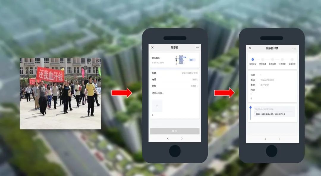 城管業(yè)務:支持群眾隨手拍,事件全過程動態(tài)跟蹤。