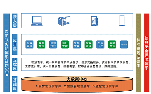 智慧監(jiān)獄支撐技術(shù),以大數(shù)據(jù)、云計算、物聯(lián)網(wǎng)等新一代信息技術(shù)為支撐,實(shí)現(xiàn)對監(jiān)獄各類信息的感知、分析、處理和整合,實(shí)現(xiàn)更全面的感知、更智能的控制、更廣泛的交互、更深度的融合和更緊密的協(xié)同,在此基礎(chǔ)上實(shí)現(xiàn)對監(jiān)獄科學(xué)化、精細(xì)化、智慧化管理。